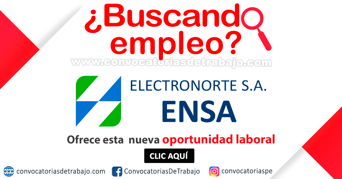 Cuando esta entidad(EMPRESA REGIONAL DE SERVICIO PÚBLICO DE ELECTRICIDAD DEL NORTE S.A. (ELECTRONORTE S.A. - ENSA)) requiera nuevo personal, publicaremos sus convocatorias por este medio.