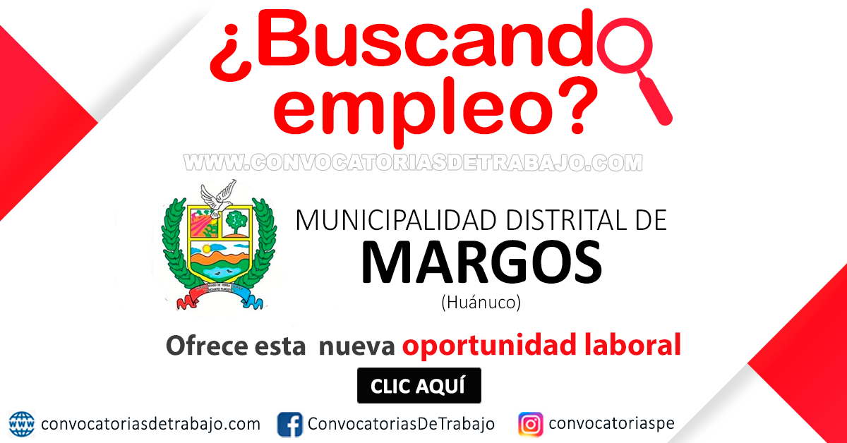 Cuando esta entidad(MUNICIPALIDAD DISTRITAL DE MARGOS) requiera nuevo personal, publicaremos sus convocatorias por este medio.