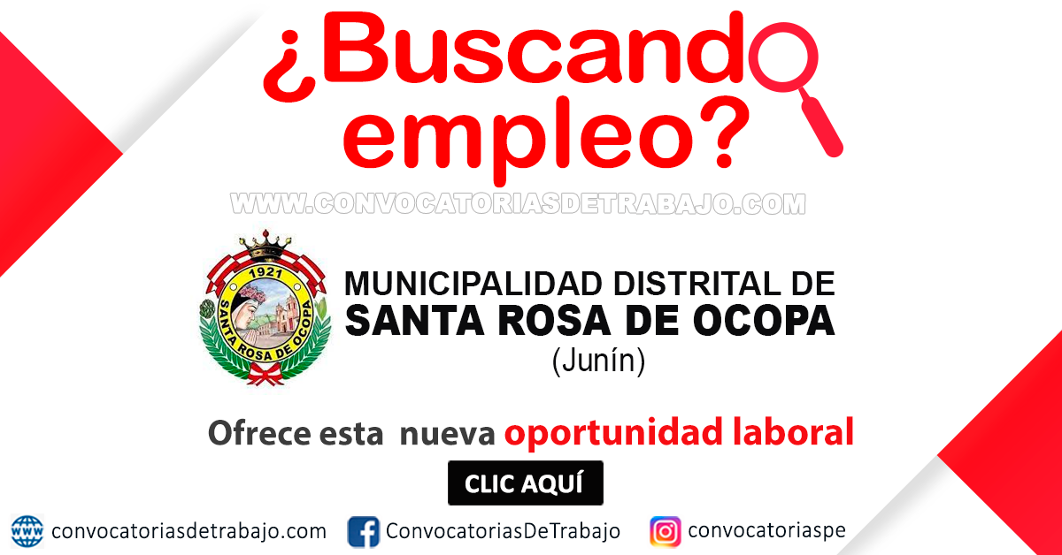 Convocatorias MUNICIPALIDAD DE SANTA ROSA DE OCOPA 2025 - Bolsa de trabajo/empleos y prácticas
