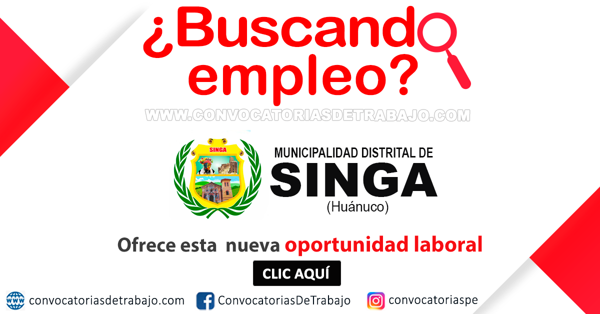 Convocatorias MUNICIPALIDAD DE SINGA 2025 - Bolsa de trabajo/empleos y prácticas