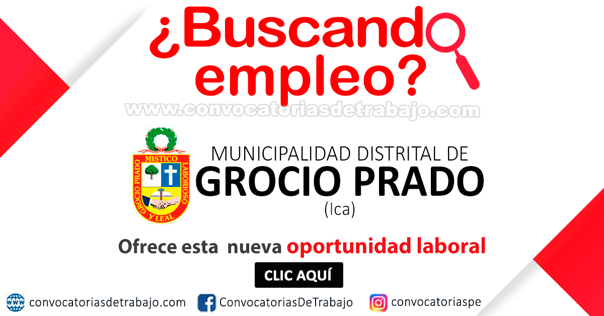 Cuando esta entidad(MUNICIPALIDAD DISTRITAL DE GROCIO PRADO ) requiera nuevo personal, publicaremos sus convocatorias por este medio.