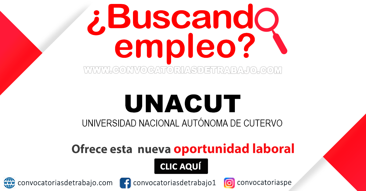 Cuando esta entidad(UNIVERSIDAD NACIONAL AUTÓNOMA DE CUTERVO - UNACUT) requiera nuevo personal, publicaremos sus convocatorias por este medio.