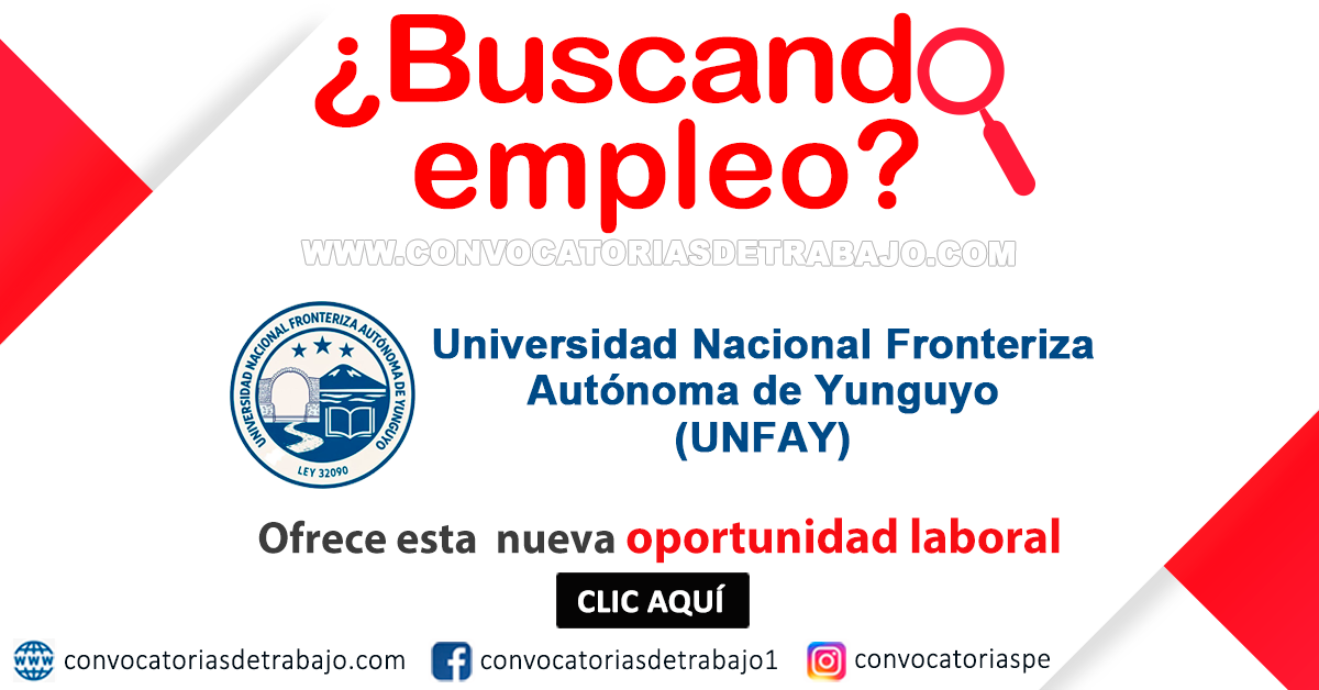 Cuando esta entidad(UNIVERSIDAD NACIONAL FRONTERIZA AUTÓNOMA DE YUNGUYO - UNFAY) requiera nuevo personal, publicaremos sus convocatorias por este medio.