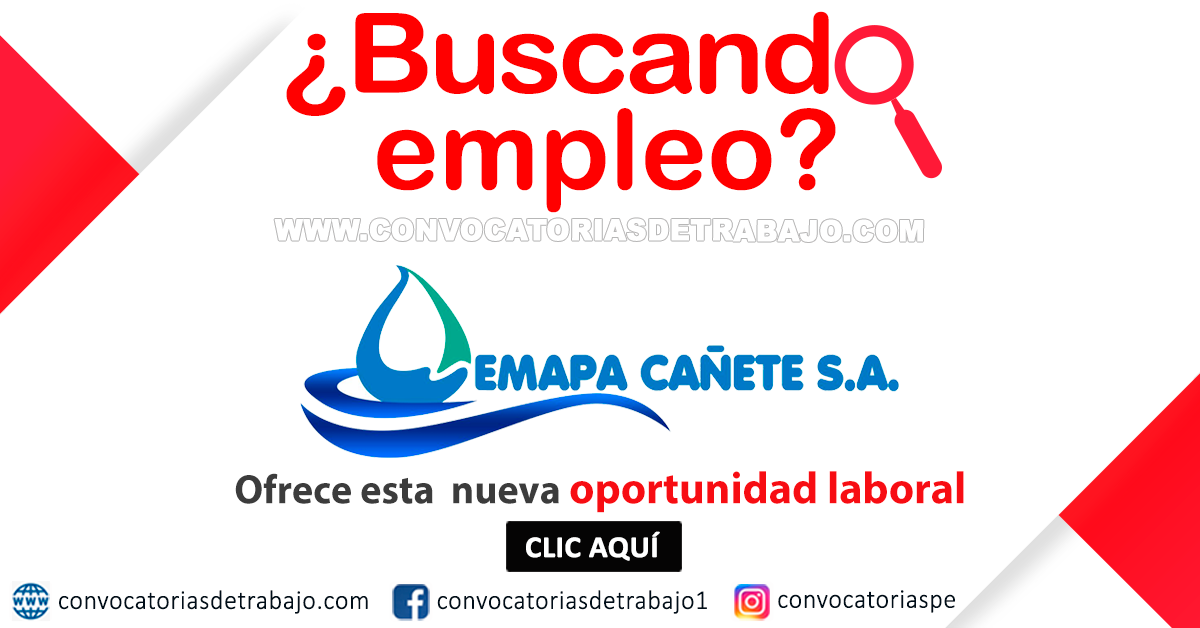 CONVOCATORIAS › EPS EMAPA CAÑETE S.A.EPS EMAPA CAÑETE S.A.: requiere 2 Jefes, 2Especialistas - Convocatoria octubre 2025