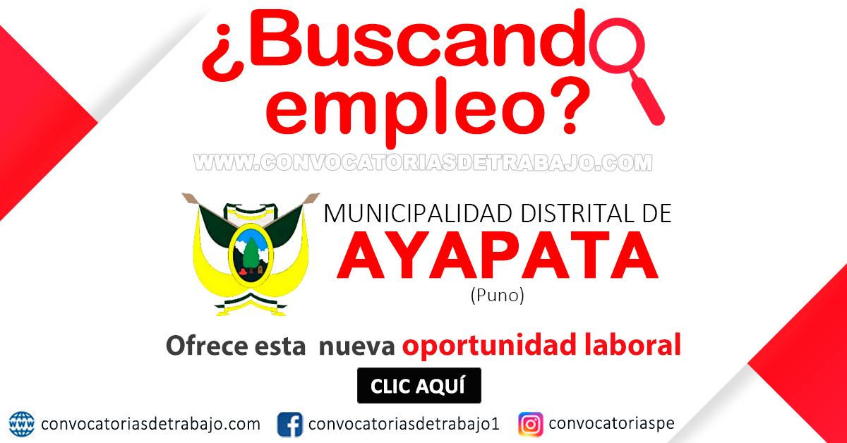 Hay plazas para: Antropología, Arquitectura, Derecho, Sociología, Ingeniería civil, Responsable de área técnica municipal, Responsable de la unidad de programa de vaso de leche, Asistente de oficina
