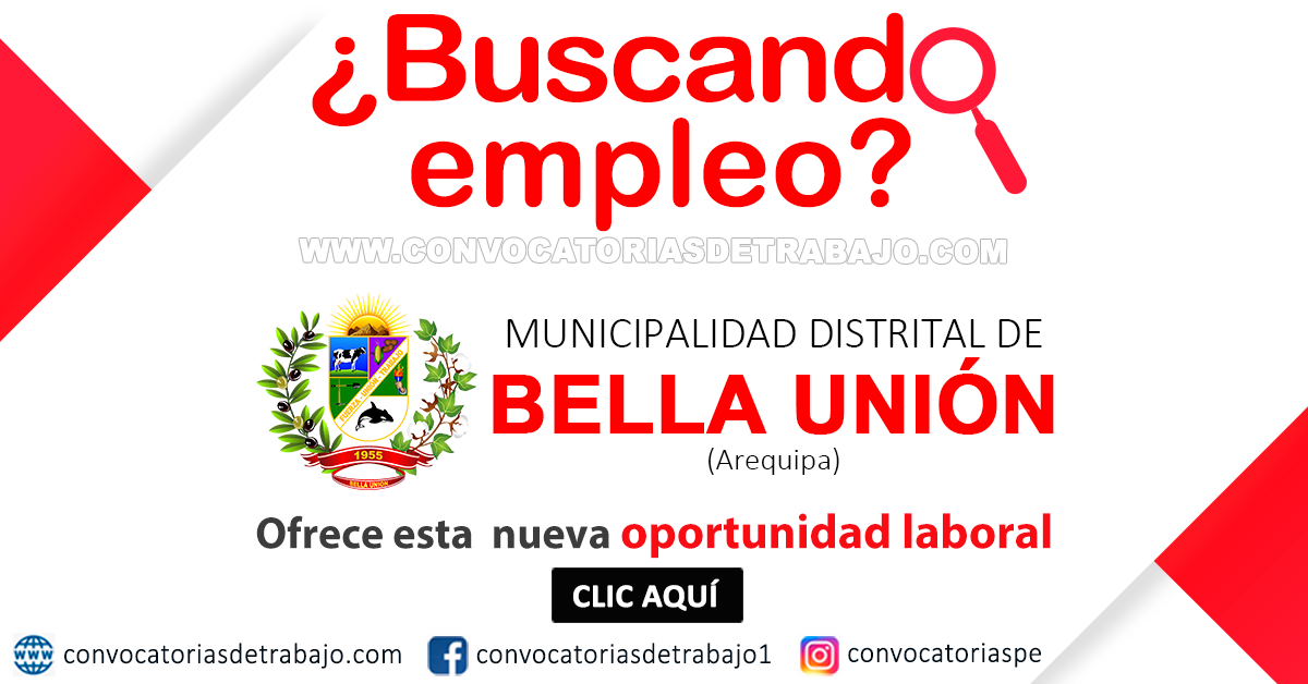 CONVOCATORIAS › MUNICIPALIDAD DE BELLA UNIÓNMUNICIPALIDAD DE BELLA UNIÓN: (25) Jefes de unidad, Especialistas, Serenos y otros cargos - Convocatoria Abril 2026