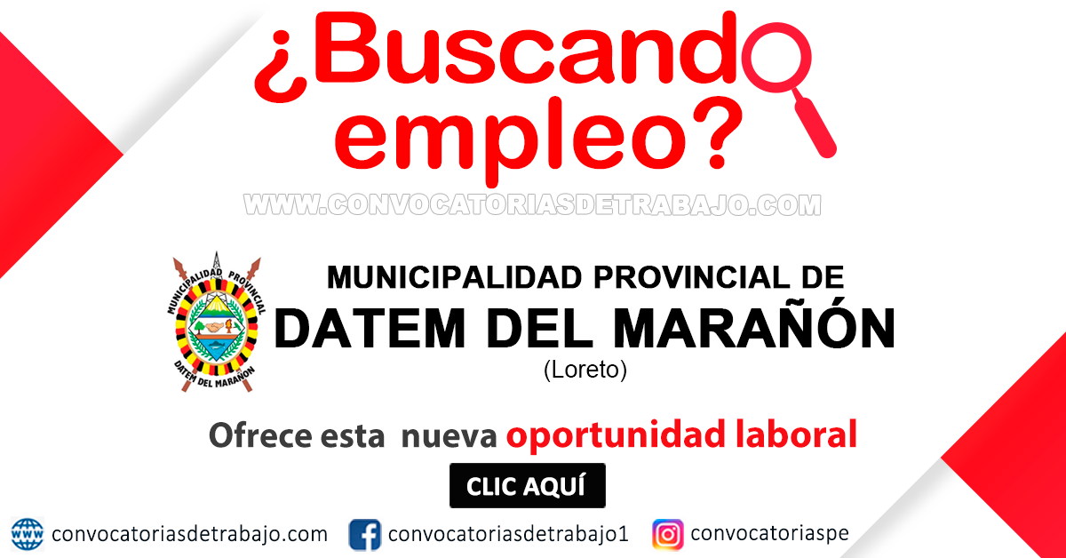 CONVOCATORIAS › MUNICIPALIDAD DATEM DEL MARAÑÓN MUNICIPALIDAD DATEM DEL MARAÑÓN: (36) Secretaria, Contador, Especialistas, Auxiliar y otros - Convocatoria marzo 2026