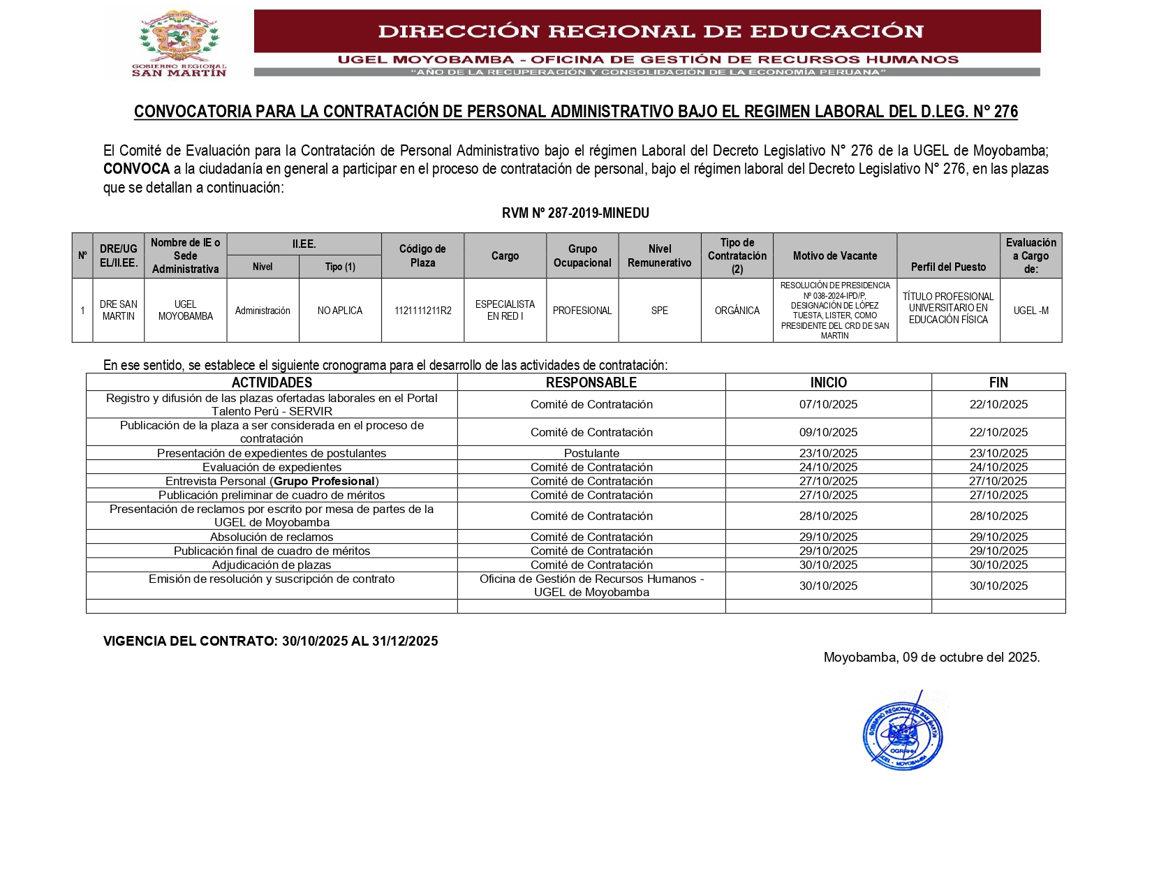 • Sigue AQUÍ los comunicados de las convocatorias de UGEL MOYOBAMBA