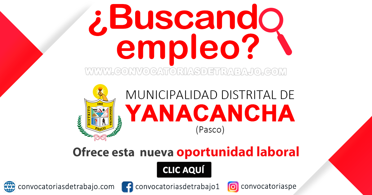 A través de esta plataforma te informaremos sobre los procesos de selección de personal de esta institución del Gobierno Peruano (MUNICIPALIDAD DISTRITAL DE YANACANCHA).