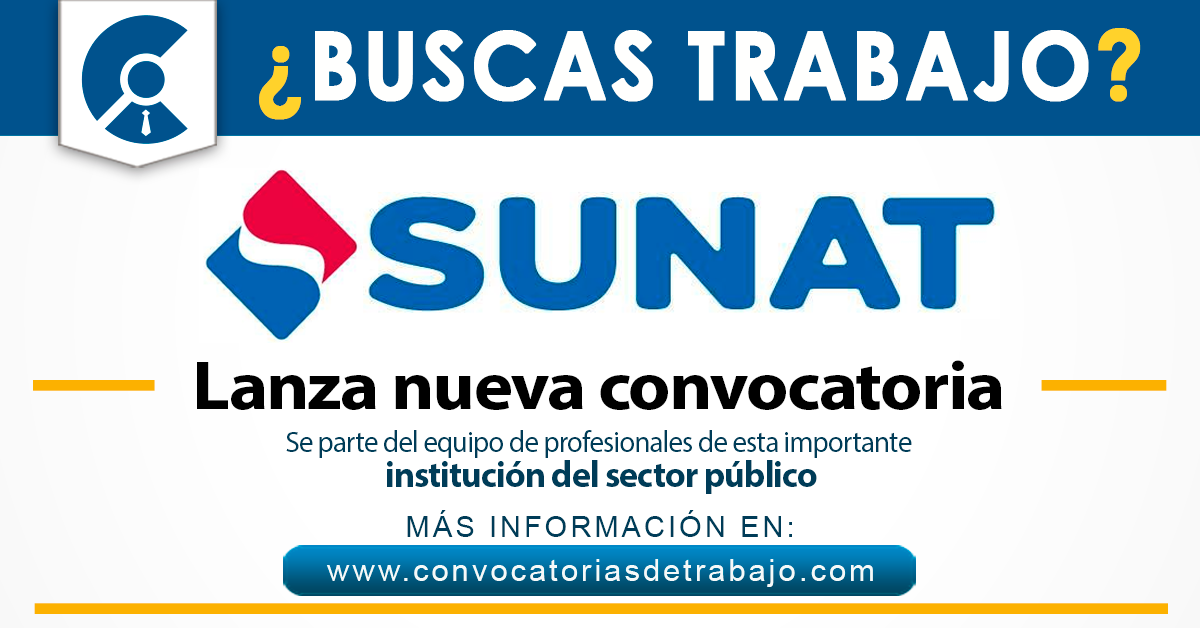 En esta página web le informaremos si la SUNAT lanza un nuevo proceso de selección de personal. Además usted puede revisar directamente las convocatorias a través del portal de empleo de la SUNAT: sunat.gob.pe